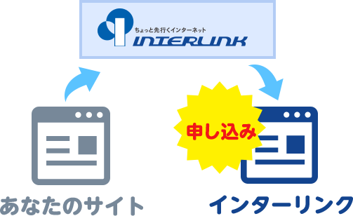 お客様のサイトにバナー(リンク)を張ってもらい、そのバナーを経由してインターリンクに入会していただくことにより、 報酬(紹介手数料)を支払うシステムです。