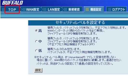 1.ルーターにログインし、画面上部のメニューから「機能設定」をクリックします。