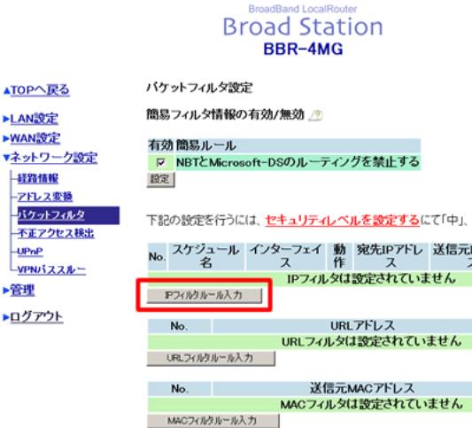 4.「IPフィルタルール入力」ボタンをクリックします。